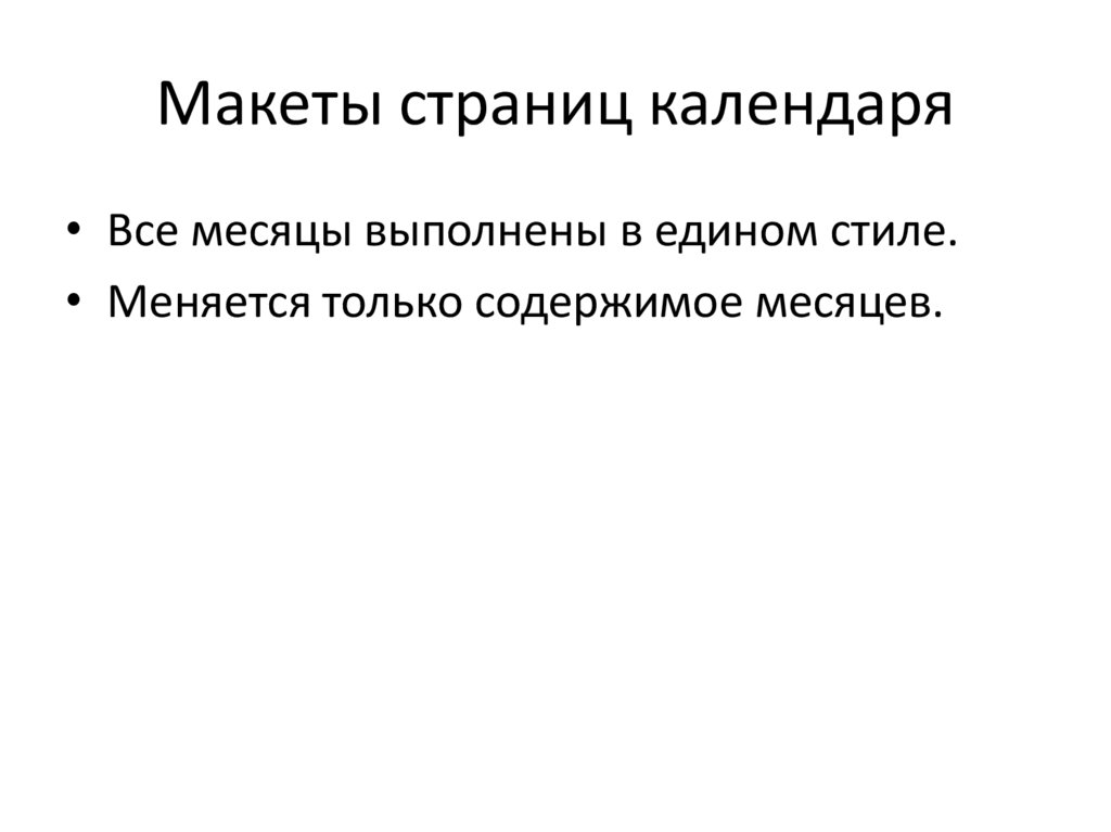 Макеты страниц календаря• Все месяцы выполнены в едином стиле.