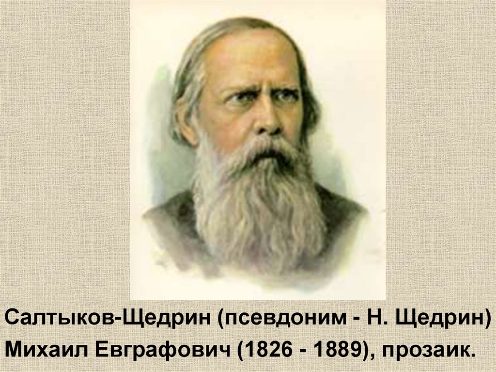 1. Салтыков-Щедрин (псевдоним - Н. Щедрин) Михаил Евграфович (1826 - 1889), прозаик.