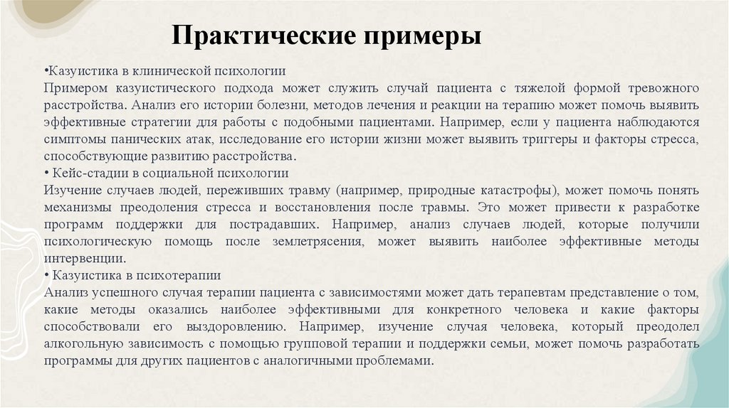 что казуистика, с акцентом на анализ конкретных случаев, помогает выявить уникальные аспекты психического здоровья и