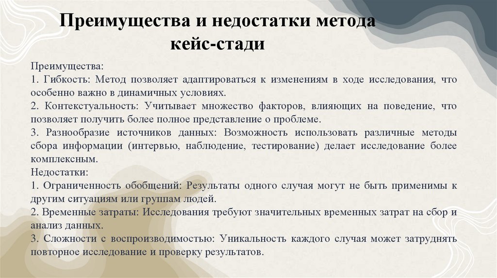 Метод кейс-стади, обладая гибкостью и разнообразием источников данных, сталкивается с трудностями в обобщении