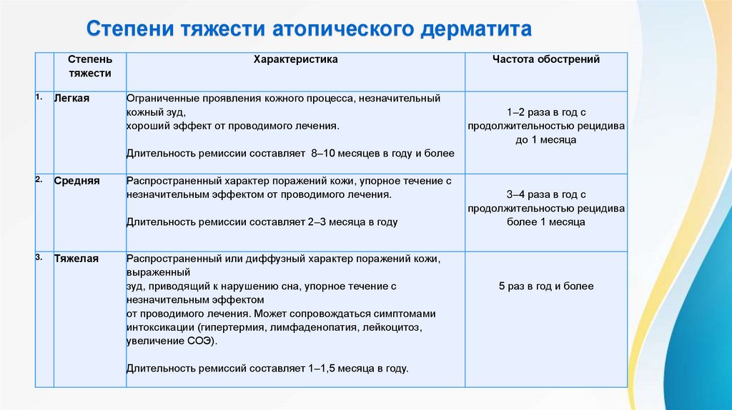 Длительность ремиссии составляет 8–10 месяцев в году и более