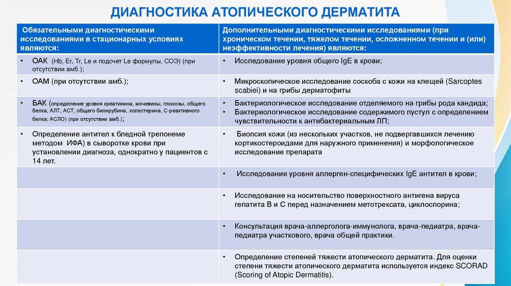 ДИАГНОСТИКА АТОПИЧЕСКОГО ДЕРМАТИТАОбязательными диагностическими
