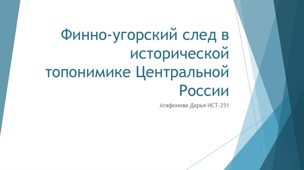 1. Финно-угорский след в исторической топонимике Центральной России