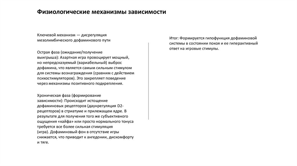 Физиологические механизмы зависимостиКлючевой механизм — дисрегуляция