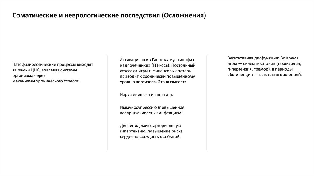 Соматические и неврологические последствия (Осложнения)Патофизиологические процессы выходят