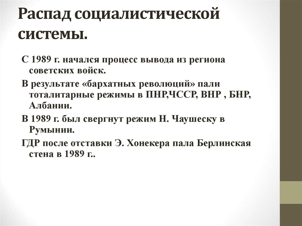 В 1989 г. был свергнут режим Н. Чаушеску в