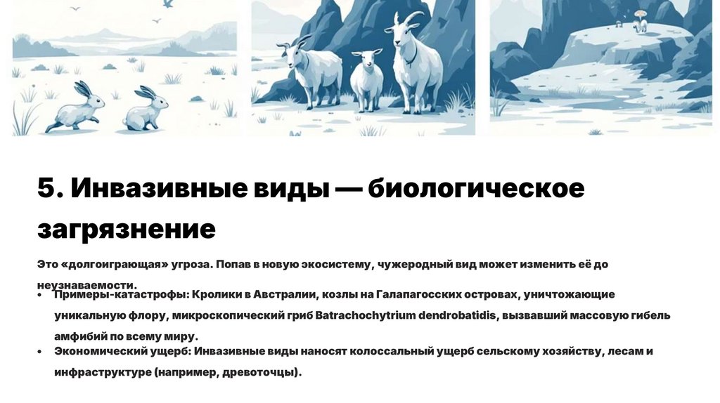 • Примеры-катастрофы: Кролики в Австралии, козлы на Галапагосских островах, уничтожающие