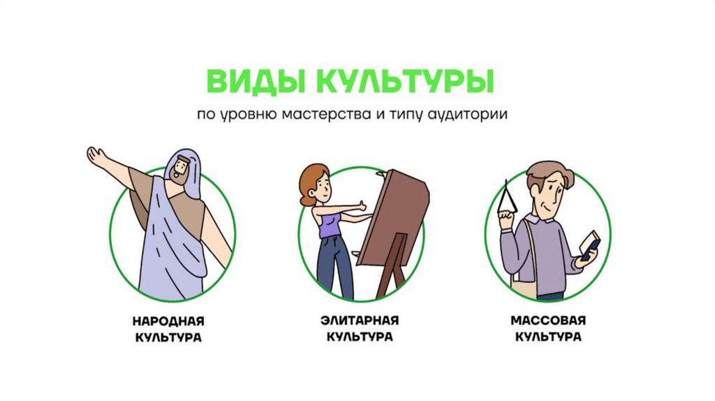 15. Элитарная культура — культура, рассчитанная на узкий круг потребителей, подготовленных к восприятию сложных по форме и