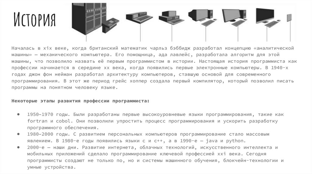 Некоторые этапы развития профессии программиста: