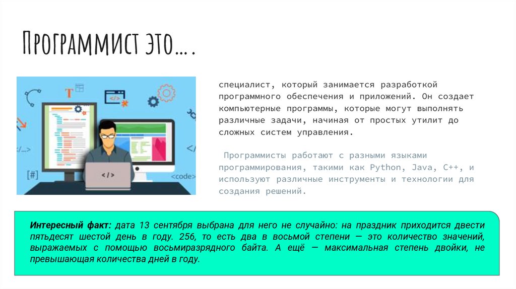 Программист это….специалист, который занимается разработкой