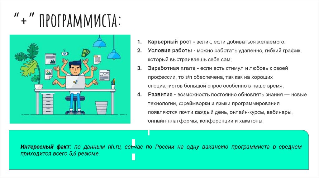 Интересный факт: по данным hh.ru, сейчас по России на одну вакансию программиста в среднем