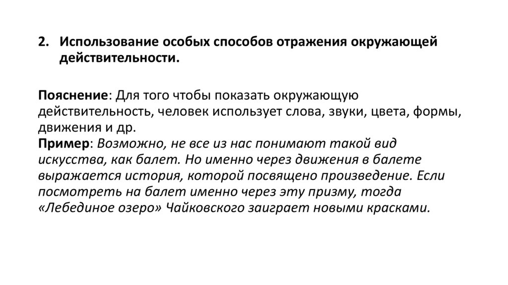 2. Использование особых способов отражения окружающейдействительности.