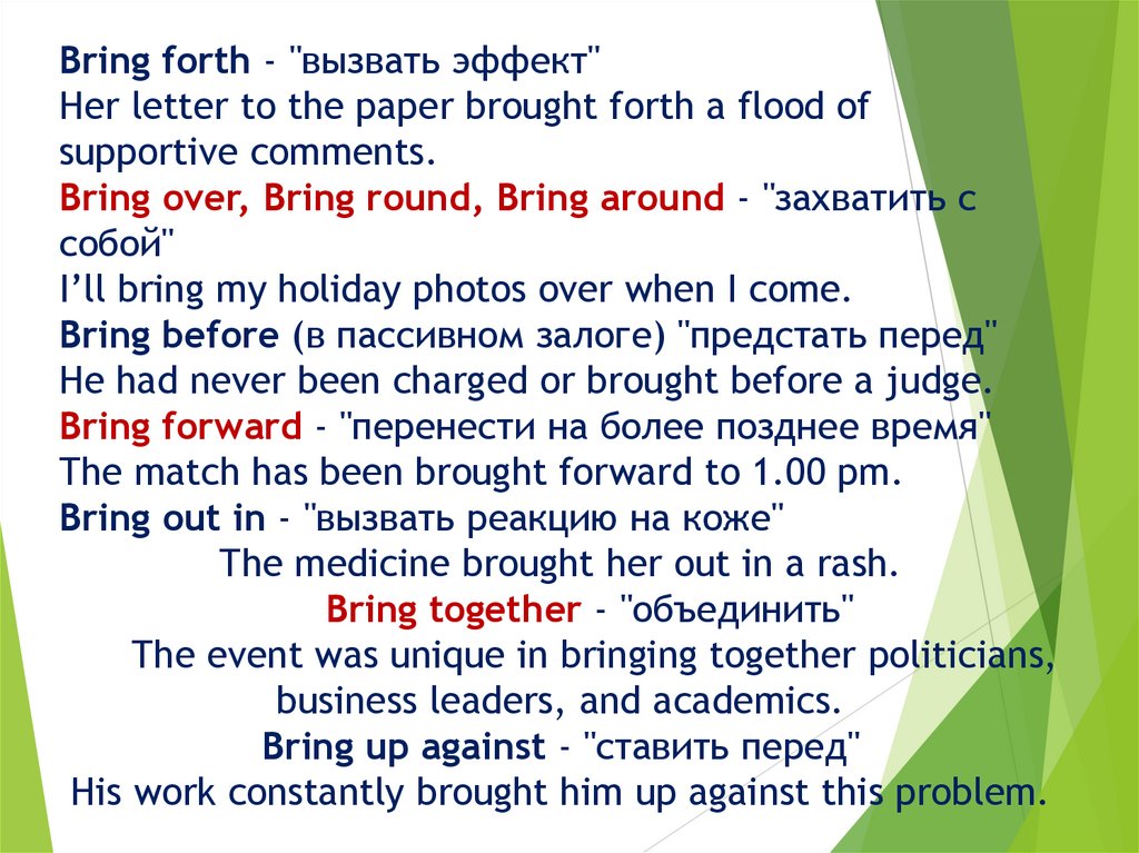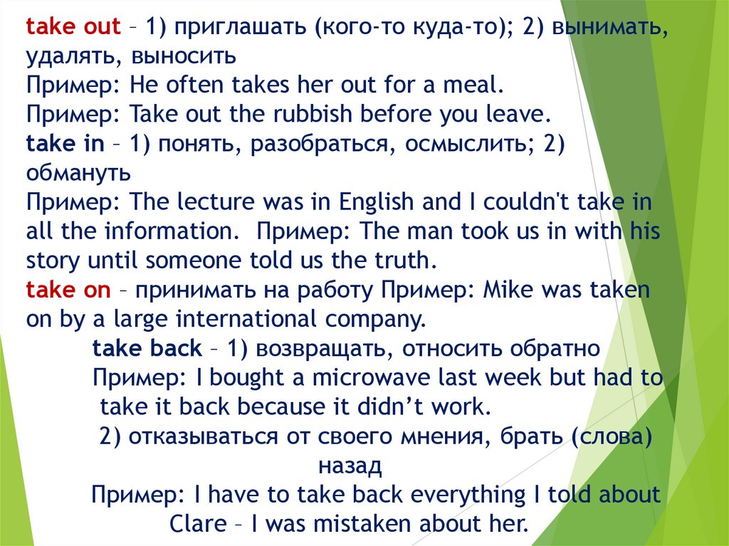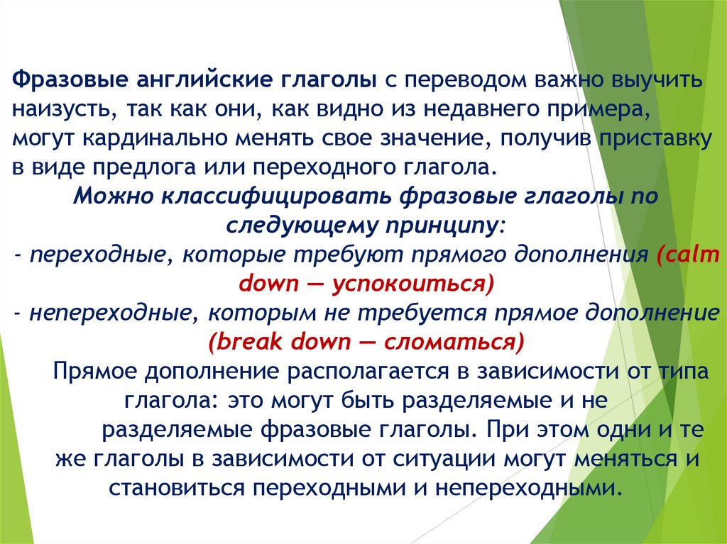 Фразовые английские глаголы с переводом важно выучитьнаизусть, так как они, как видно из недавнего примера,