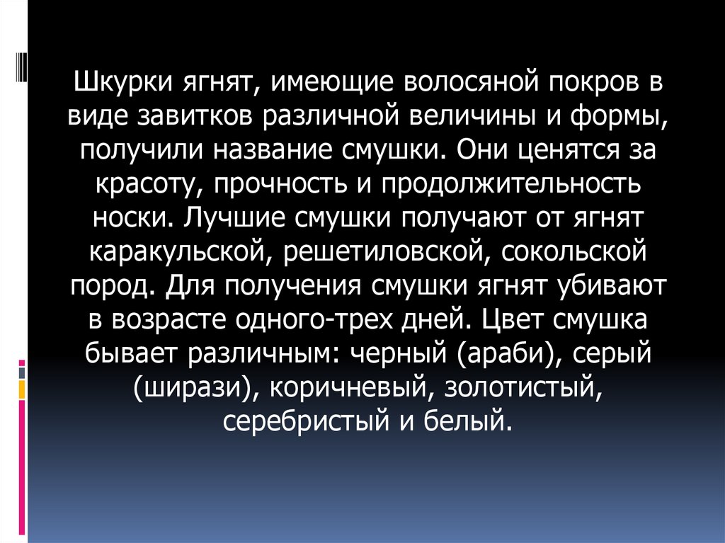 Шкурки ягнят, имеющие волосяной покров ввиде завитков различной величины и формы,