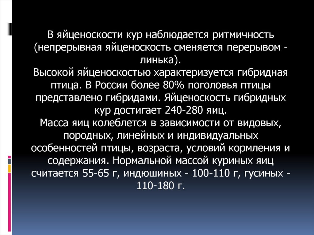 жизни. Хорошая яйценоскость у кур - 220-250 за год,