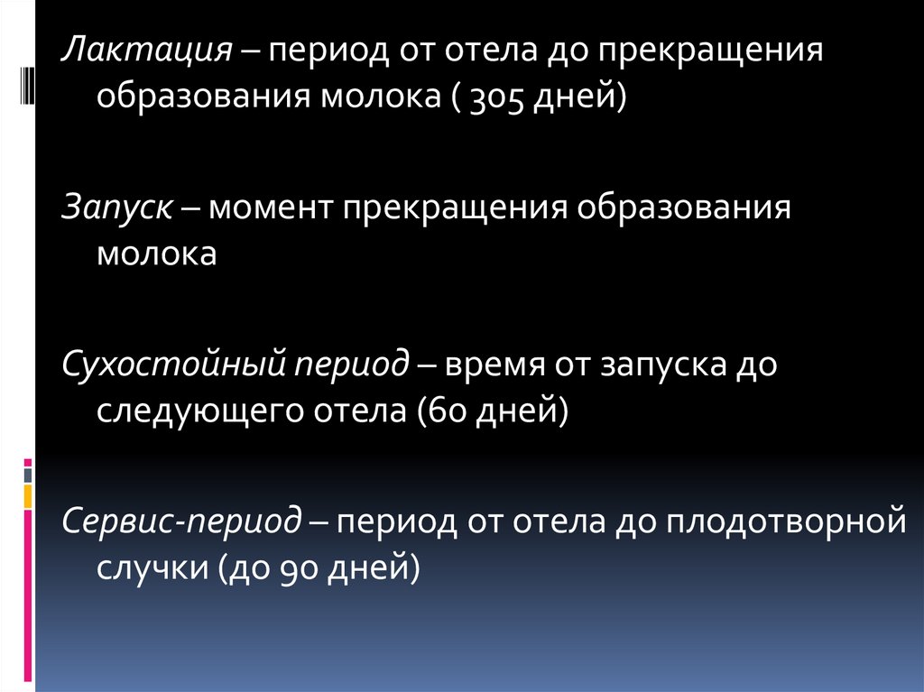 Лактация – период от отела до прекращенияобразования молока ( 305 дней)