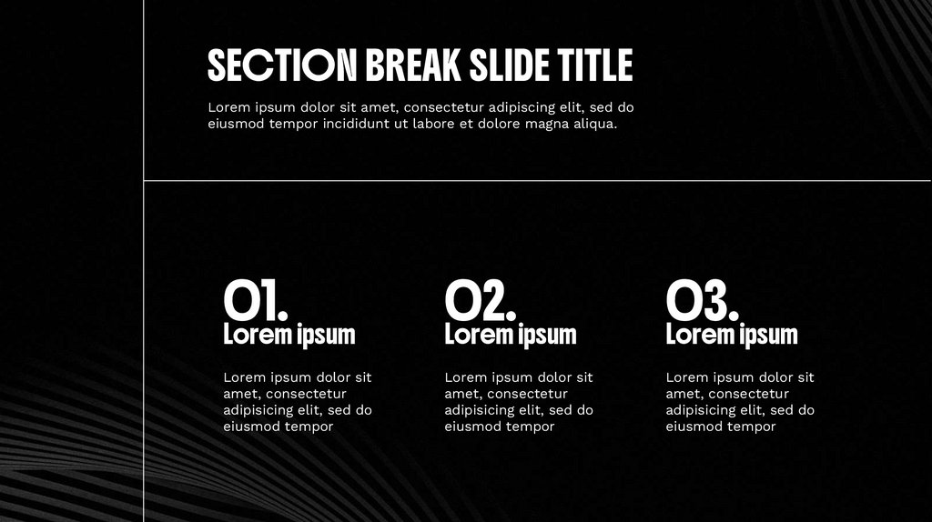 SECTION BREAK SLIDE TITLELorem ipsum dolor sit amet, consectetur adipiscing elit, sed do