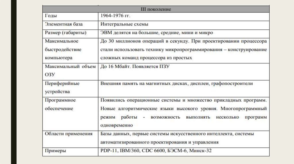 элементы. По сравнению с ЭВМ предыдущего поколения улучшены все технические