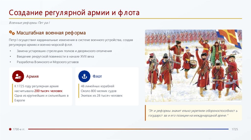 Создание регул ярной армии и ф лотаВоенные реформы Пет ра I