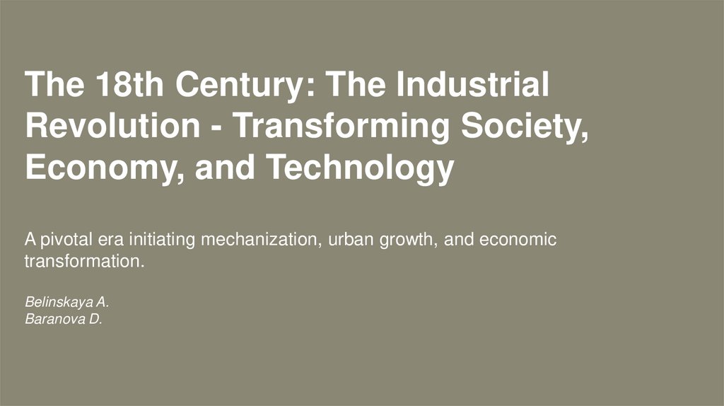 The 18th Century: The IndustrialRevolution - Transforming Society,