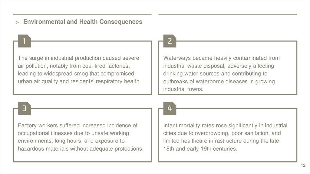 Environmental and Health ConsequencesThe surge in industrial production caused severe