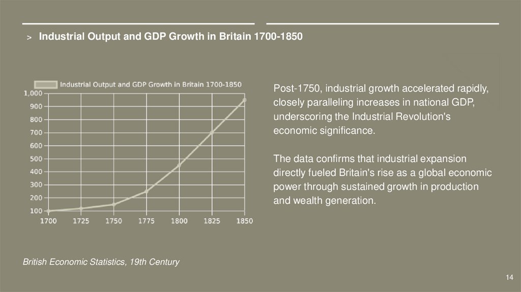 Industrial Output and GDP Growth in Britain 1700-1850Post-1750, industrial growth accelerated rapidly,