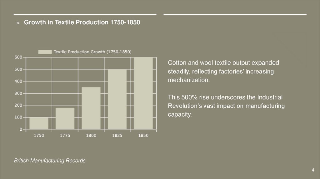 Growth in Textile Production 1750-1850Cotton and wool textile output expanded
