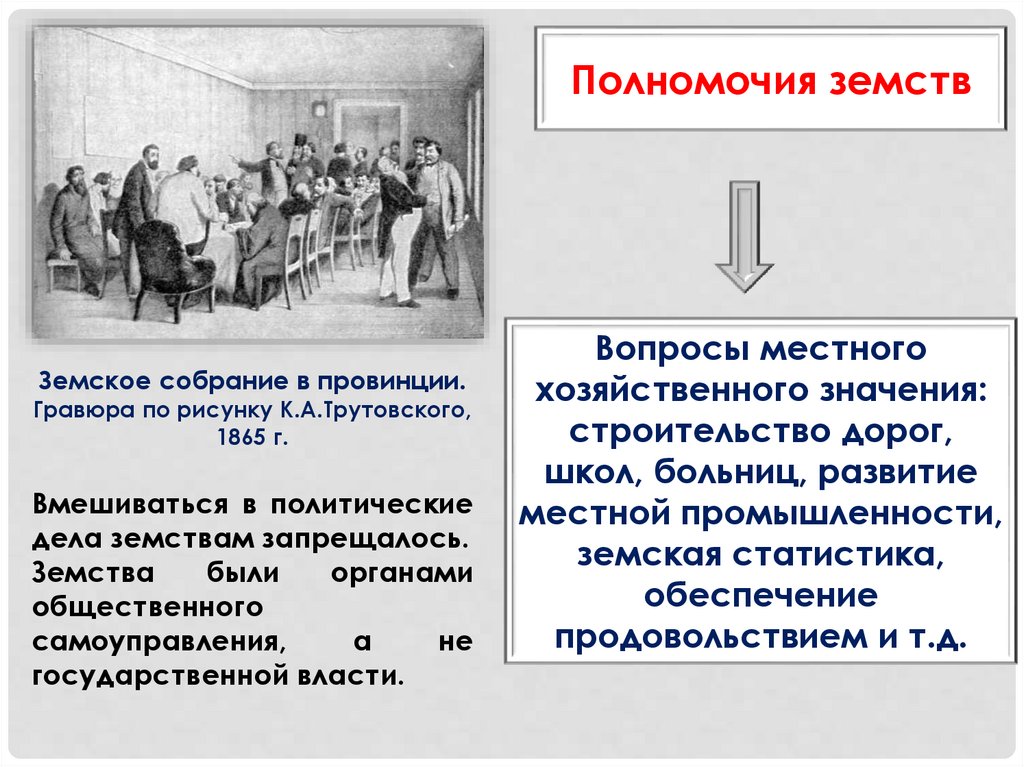 ЗЕМСКАЯ РЕФОРМА• В земстве, в т. ч. в его