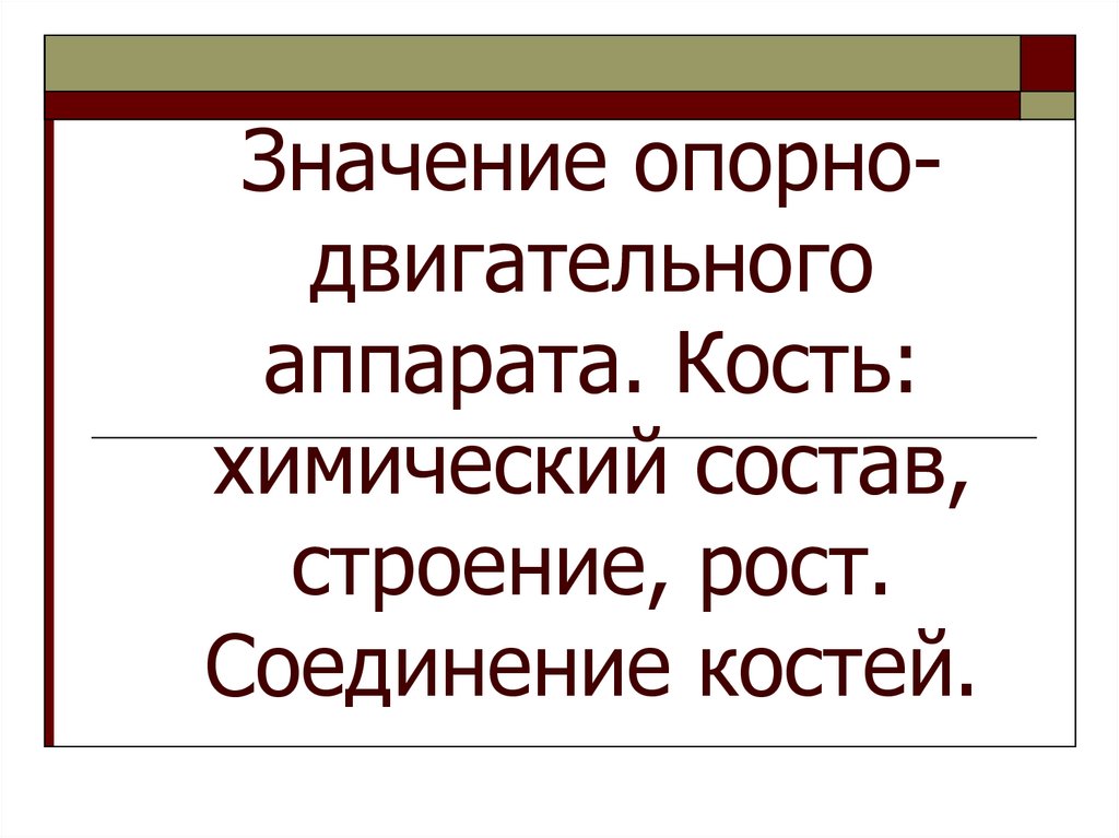 1. Значение опорно-двигательного аппарата. Кость: химический состав, строение, рост. Соединение костей.