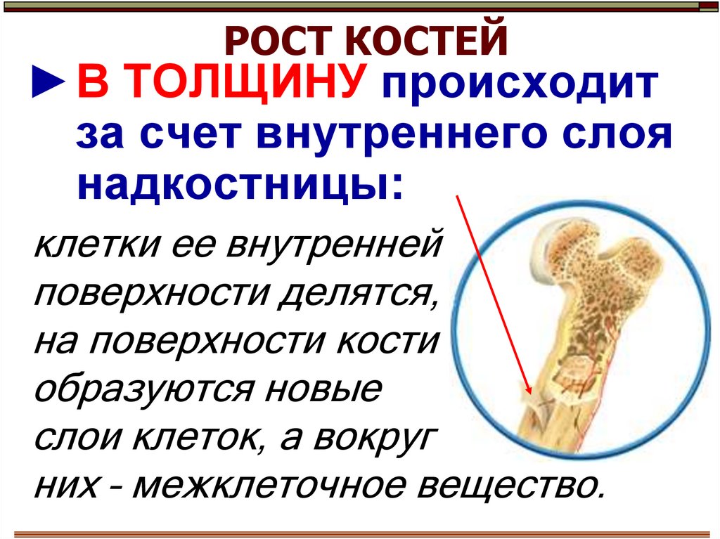 РОСТ КОСТЕЙ►В ТОЛЩИНУ происходит