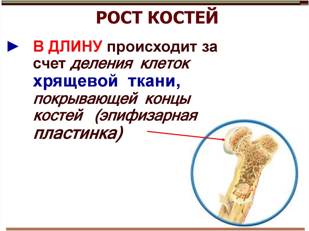 РОСТ КОСТЕЙ► В ДЛИНУ происходит за