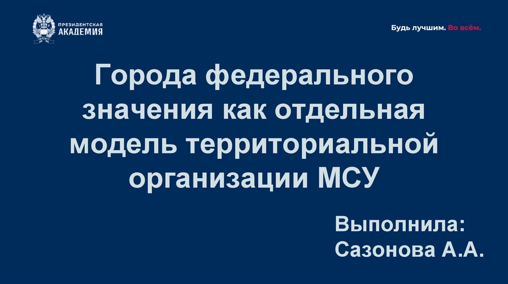 Модель МСУ в городахфедерального значения