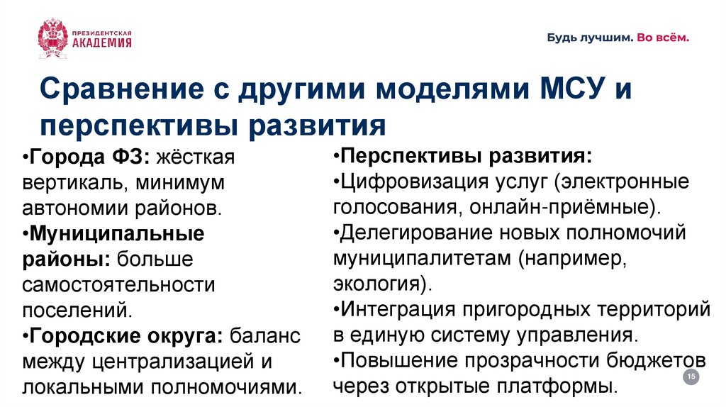 Сравнение с другими моделями МСУ иперспективы развития