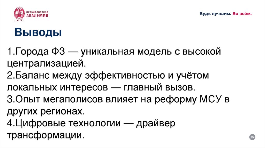 Выводы1.Города ФЗ — уникальная модель с высокой