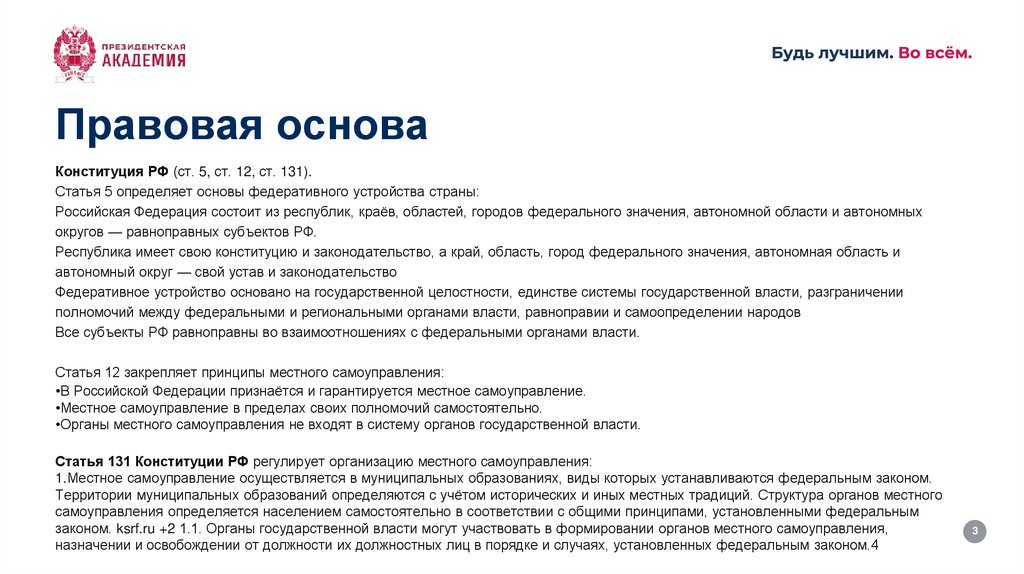 Правовая основаКонституция РФ (ст. 5, ст. 12, ст. 131).