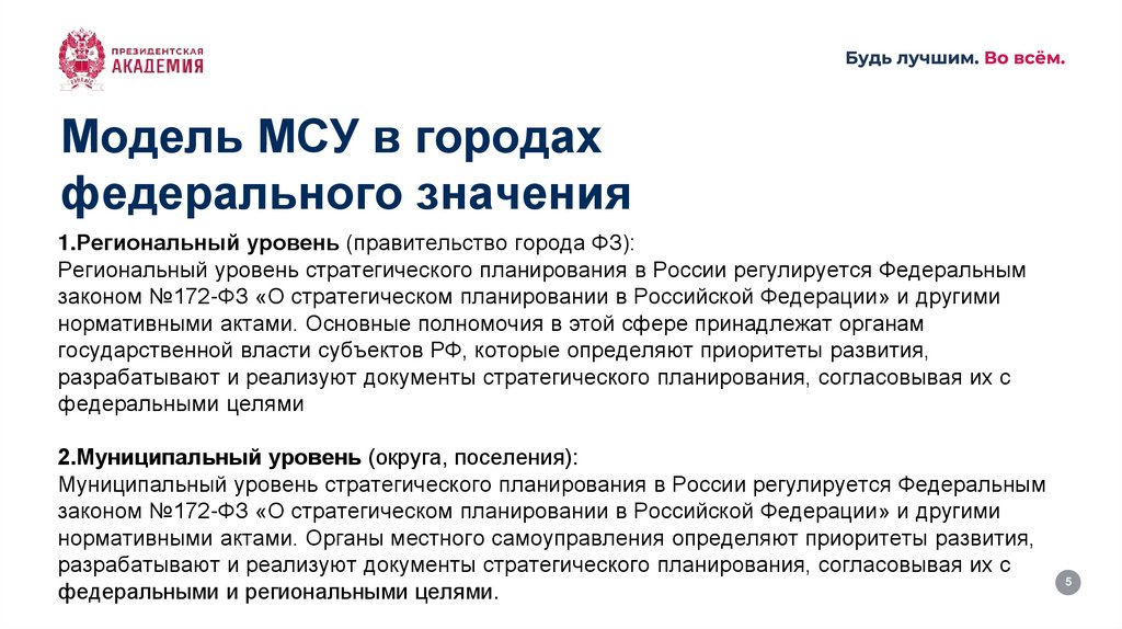 Муниципальный уровень стратегического планирования в России регулируется Федеральным