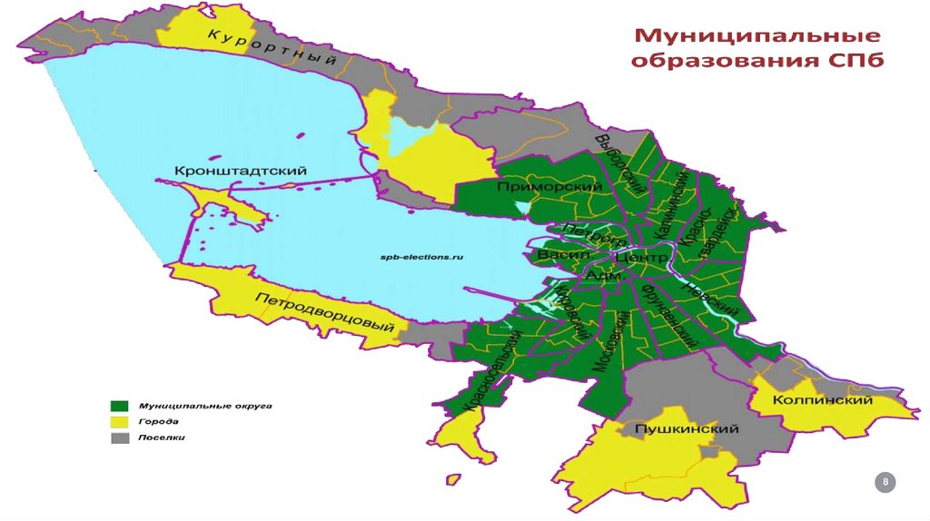 •Санкт-Петербург: 18 районов → муниципальные округа, города, посёлки.
