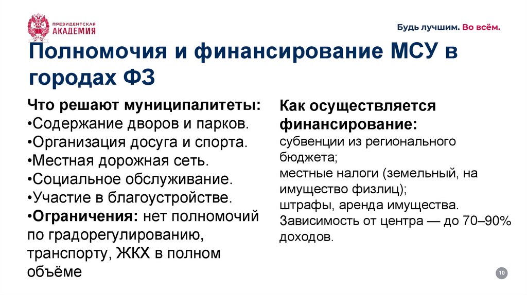 Полномочия и финансирование МСУ вгородах ФЗ
