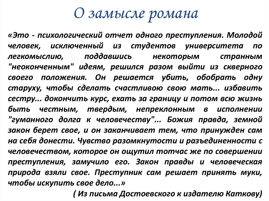 О замысле романа«Это - психологический отчет одного преступления. Молодой