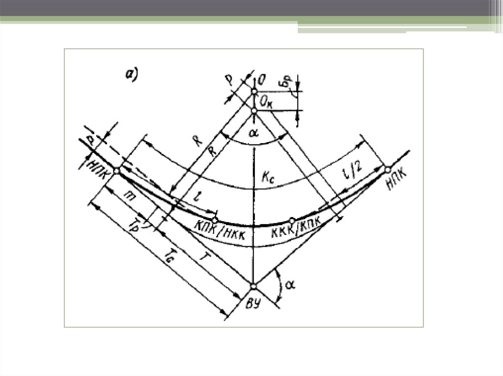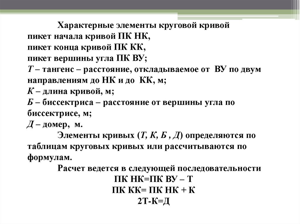 Характерные элементы круговой кривойпикет начала кривой ПК НК,