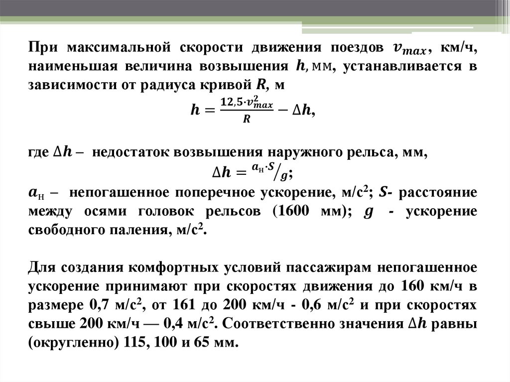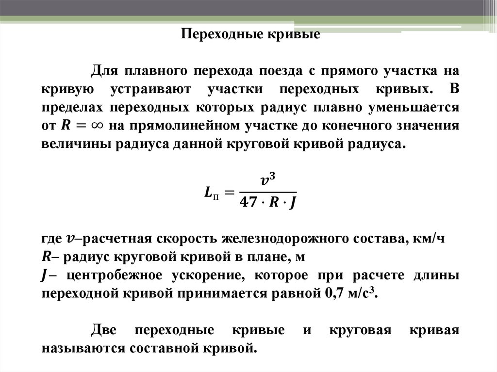 Переходные кривыеДля плавного перехода поезда с прямого участка на