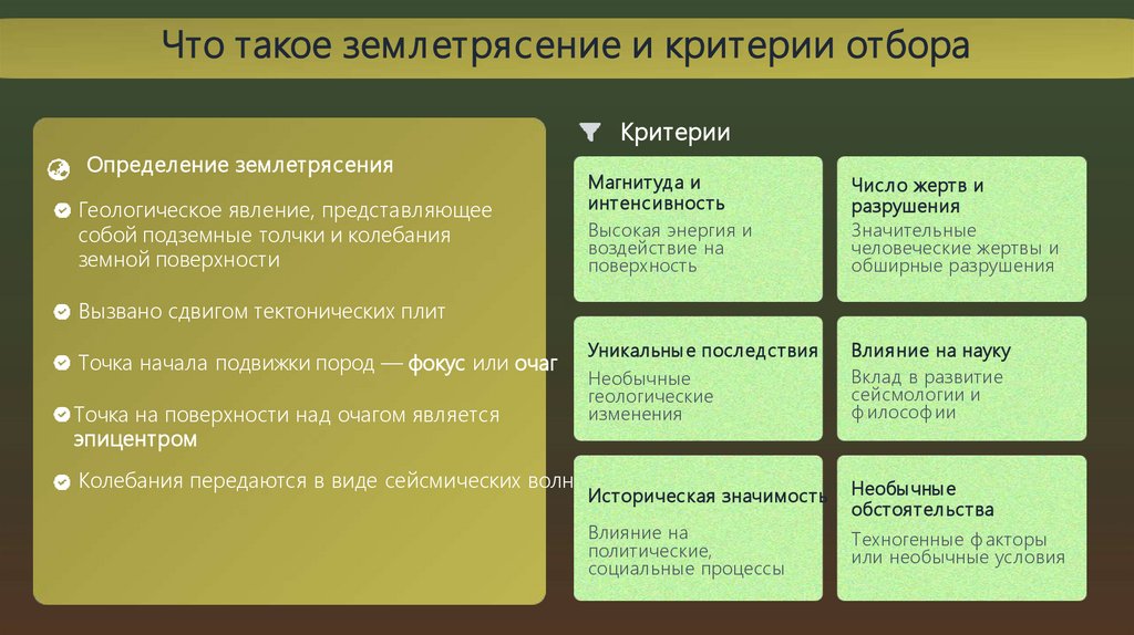 Что такое землетрясение и критерии отбораКритерии