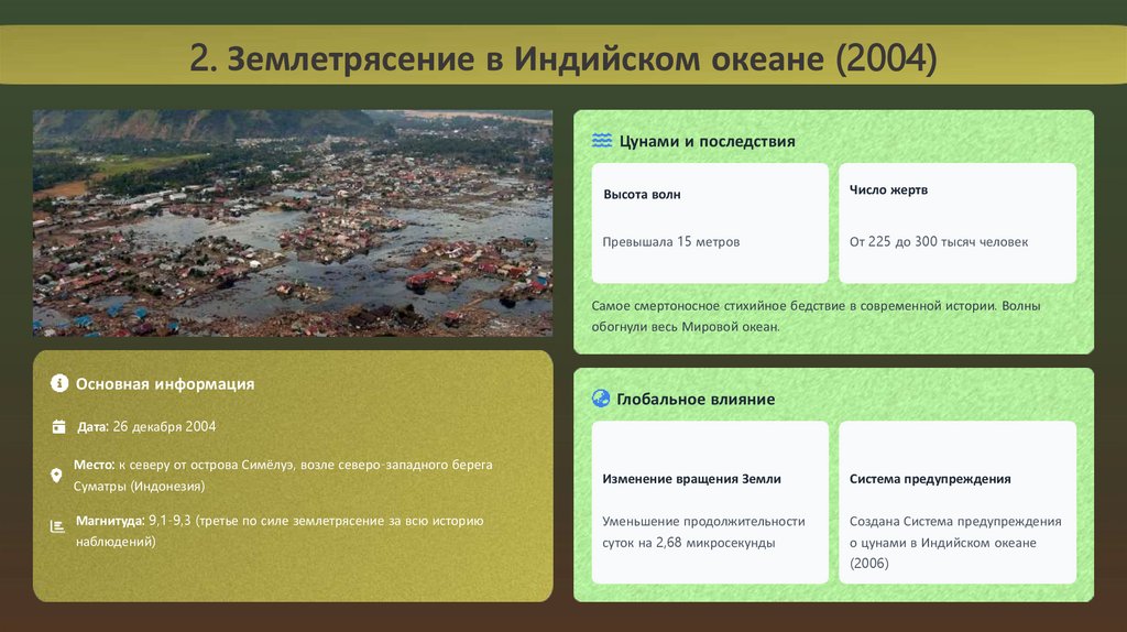 2. Землетрясение в Индийском океане (2004)Цунами и последствия