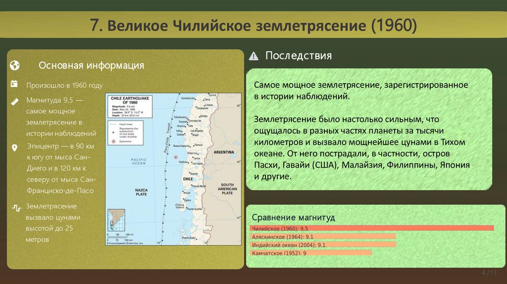 подробная справка о втором по мощности землетрясении в мире. Википедия+1