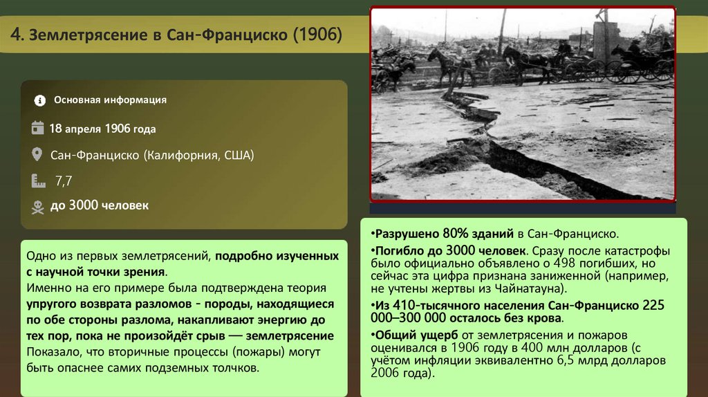 •Разрушено 80% зданий в Сан-Франциско.