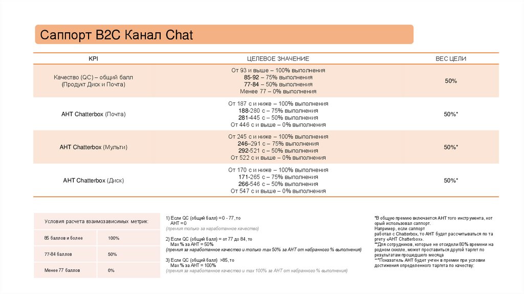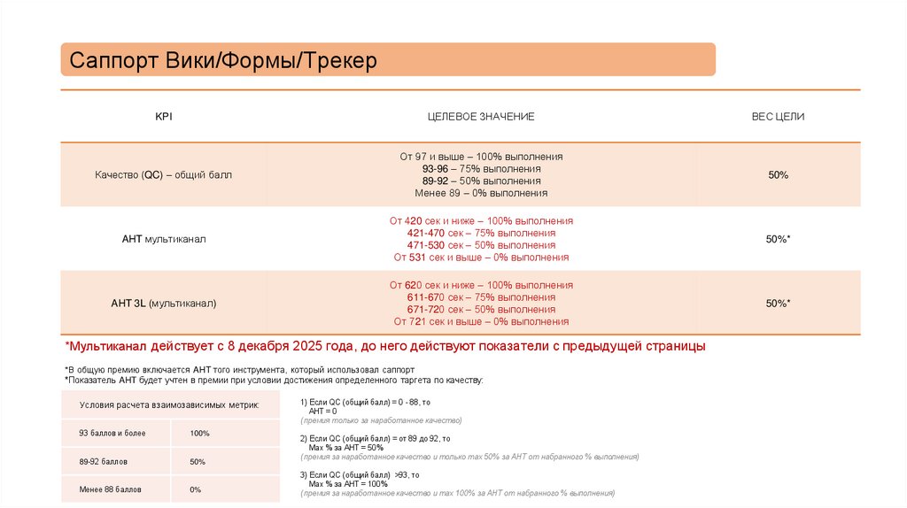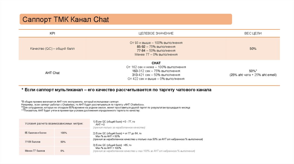 * Если саппорт мультиканал – его качество рассчитывается по таргету чатового канала