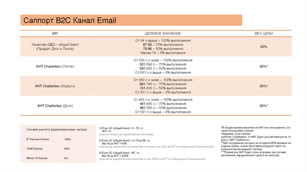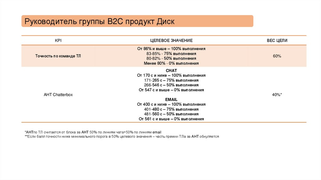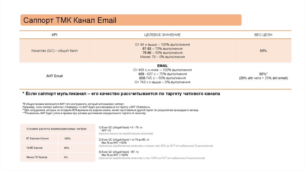 *AHT по ТЛ считается от блока за AHT 50% по линиям чата + 50% по линиям email