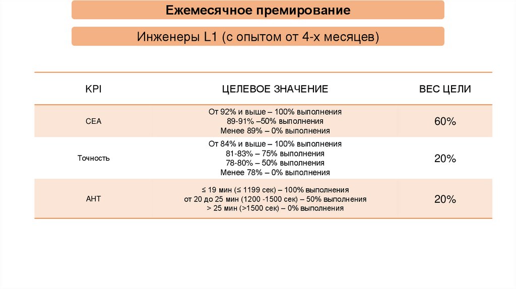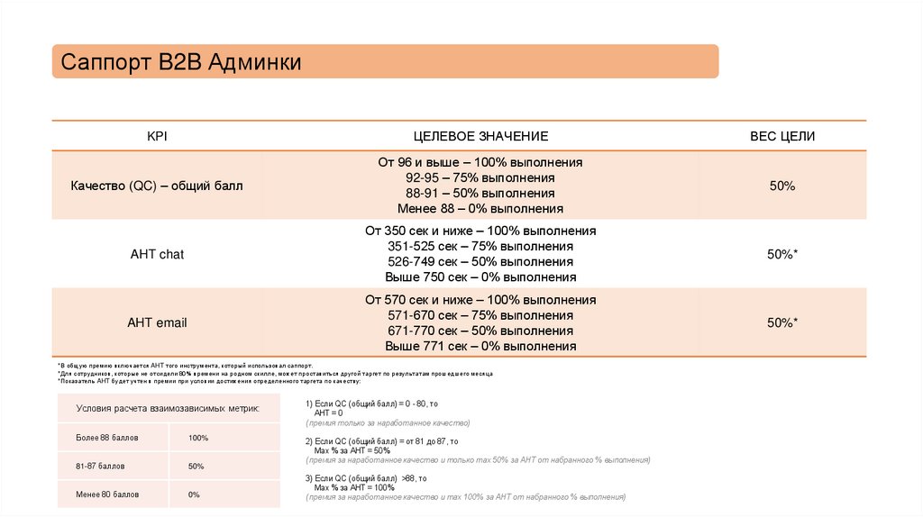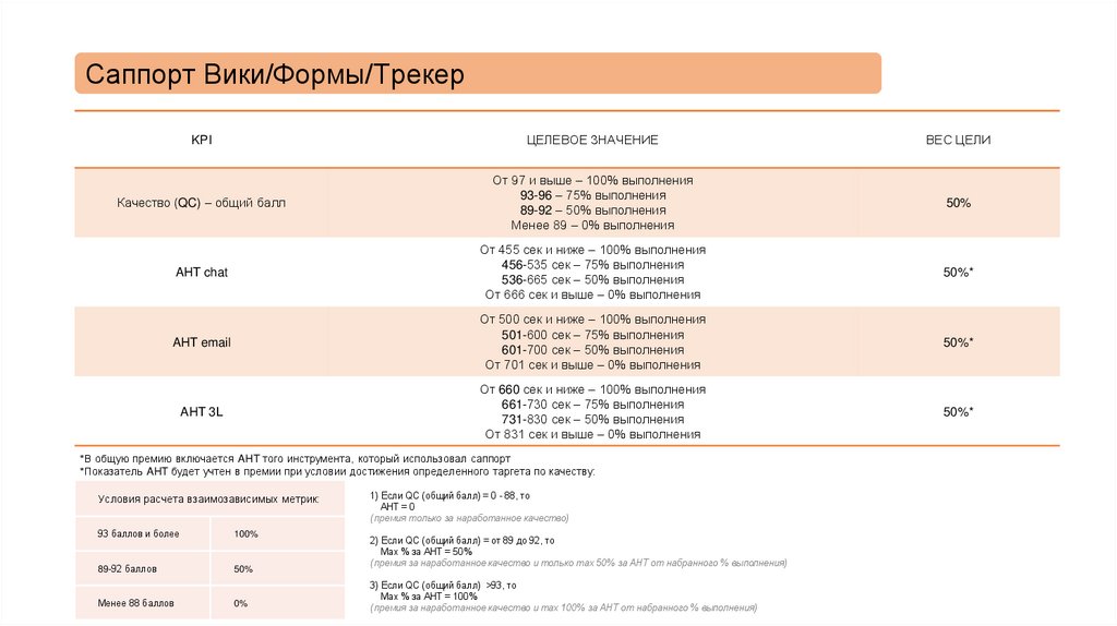 ***Показатель AHT будет учтен в премии при условии достижения определенного таргета по качеству: