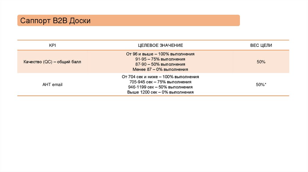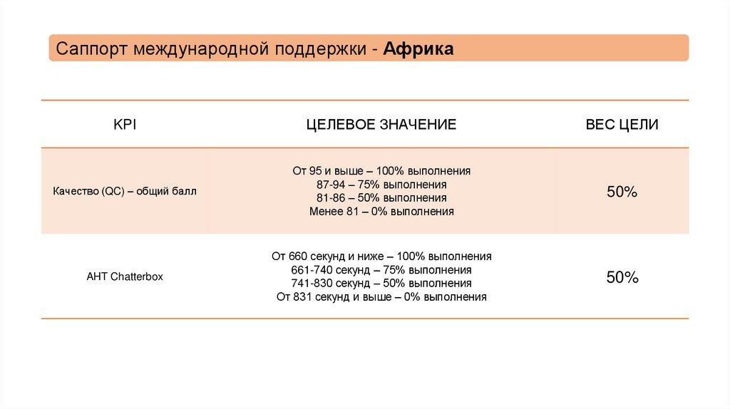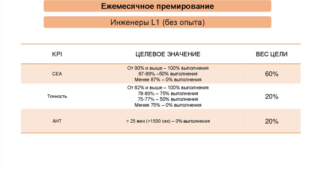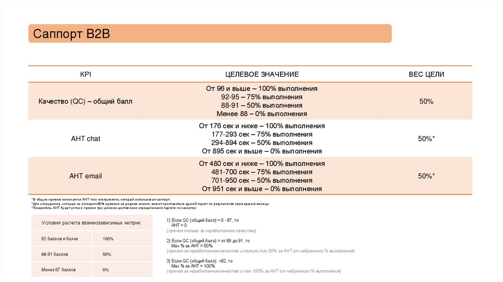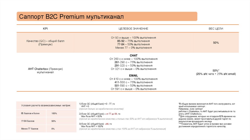 (премия за наработанное качество и только max 50% за AHT от набранного % выполнения)