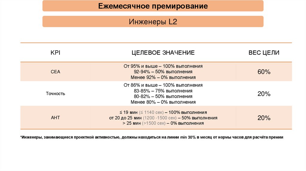 **Для сотрудников, которые не отсидели 80% времени на родном скилле, может проставиться другой таргет по результатам прошедшего месяца
